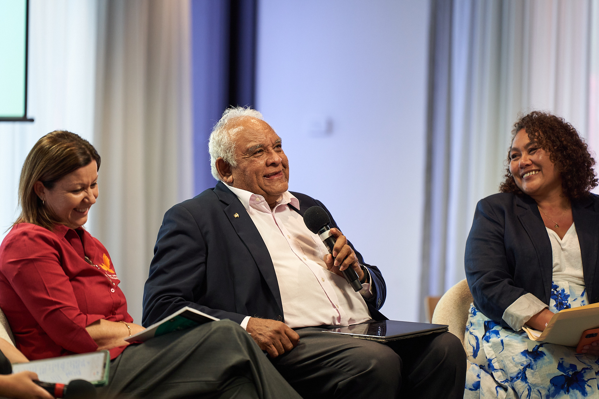 Dyonne Anderson, Professor Tom Calma and Karen Mundine contributing to the FUTURE panel conversation.
